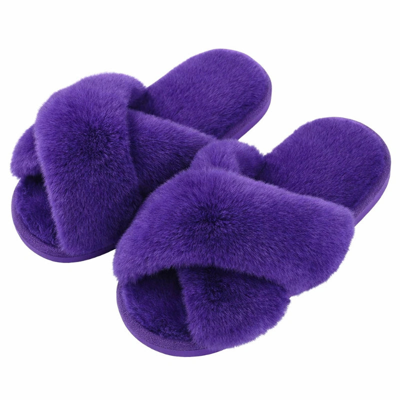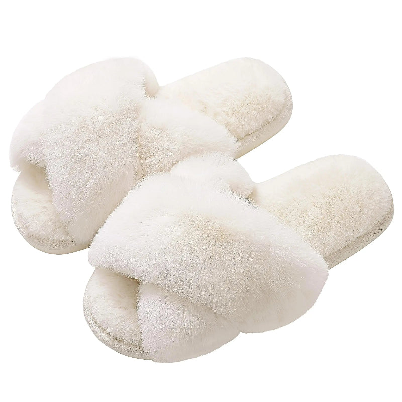 Pantoufles Moelleuses en Peluche Croisée