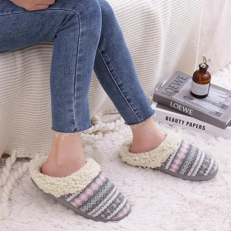 Dotées d’une doublure intérieure en fourrure et coton, ces pantoufles enveloppent entièrement le pied pour maintenir une température agréable même par temps froid. La matière douce et épaisse procure une sensation de bien-être immédiate, idéale pour se détendre après une longue journée. Ces pantoufles d’intérieur plates tricotées combinent souplesse et légèreté pour un confort optimal au quotidien.