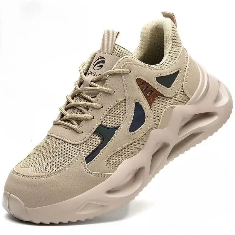 La tige en maille respirante permet une bonne circulation de l’air, aidant à limiter l’accumulation de chaleur et à maintenir une sensation de fraîcheur même lors de longues journées de travail. La conception ergonomique contribue à un maintien équilibré du pied et à une réduction de la fatigue.